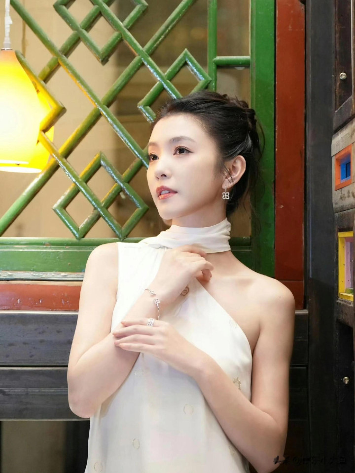李云霄文艺志愿者时代风尚行动美照, 裙身鎏金刺绣, 东方气质拿捏
